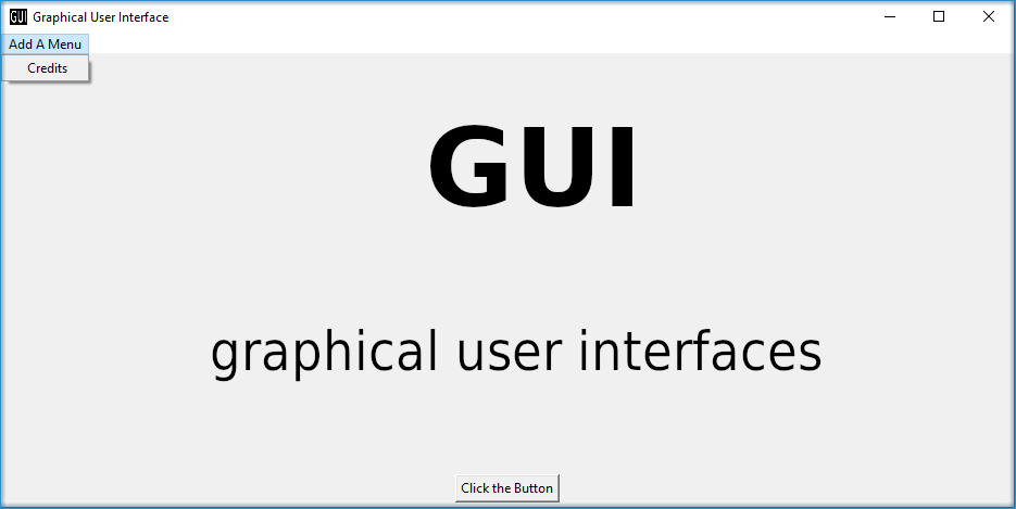 tk.Menuwith drop-down cascadetk.Label(see above)tk.Button(see above)tk.Entrythat is a blank field where users can enter values or wordsttk.Comboboxthat is a drop-down menu in the master frame (tk-themedttkwidget)tk.Listboxwith atk.Scrollbar, where the scrollbar is required to navigate to listbox entries that are not in the visible range of the listbox sizetk.Checkbuttonthat can be checked (ticked) to set atk.BooleanVar()object toTrue(default: not checked ->False)