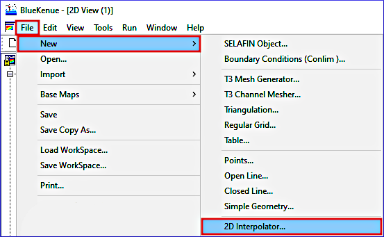 Go to File > New > Boundary Conditions (Conlim )... and a new 2D Interpolator object will appear in the Data Items of the WorkSpace.